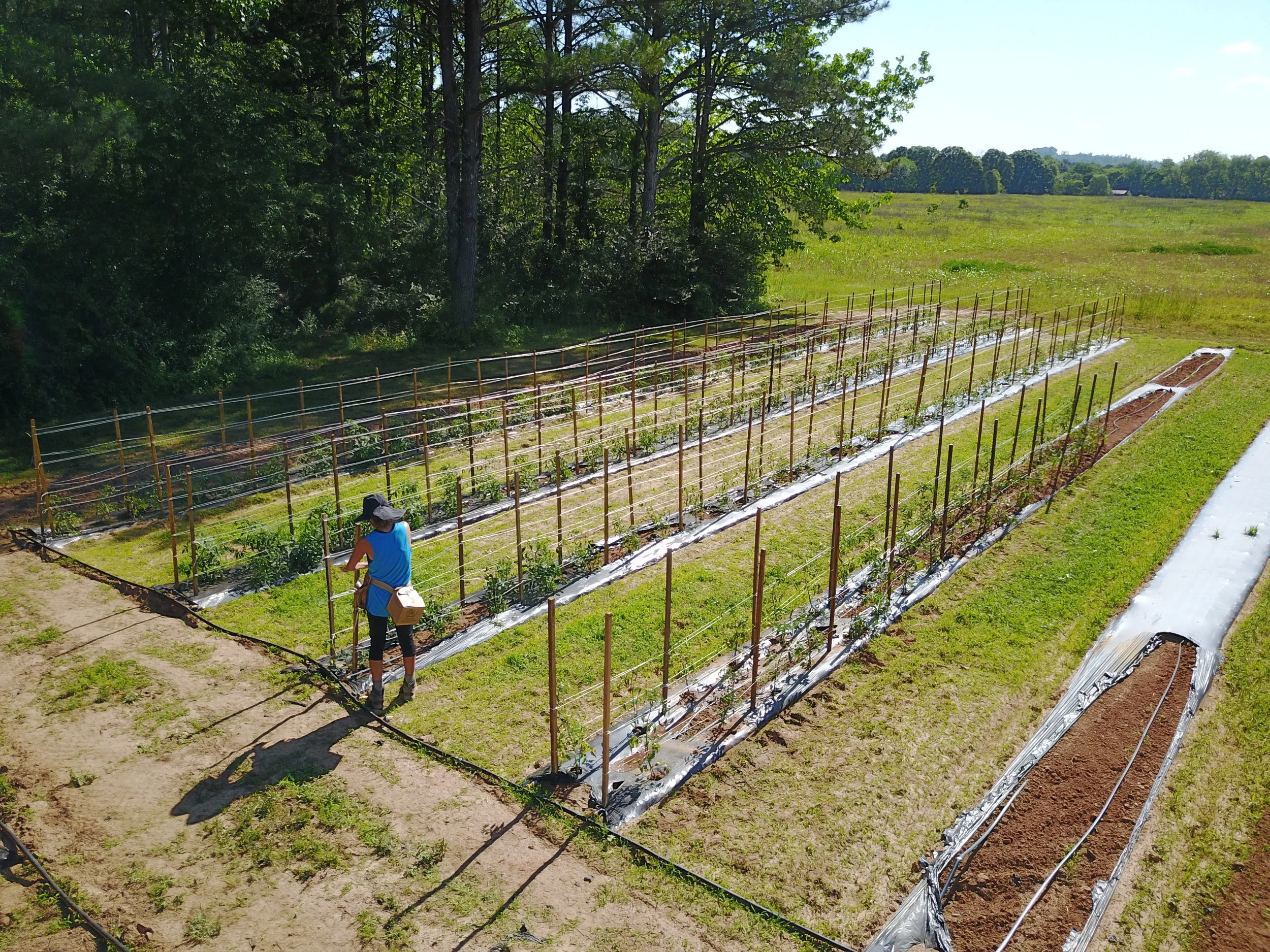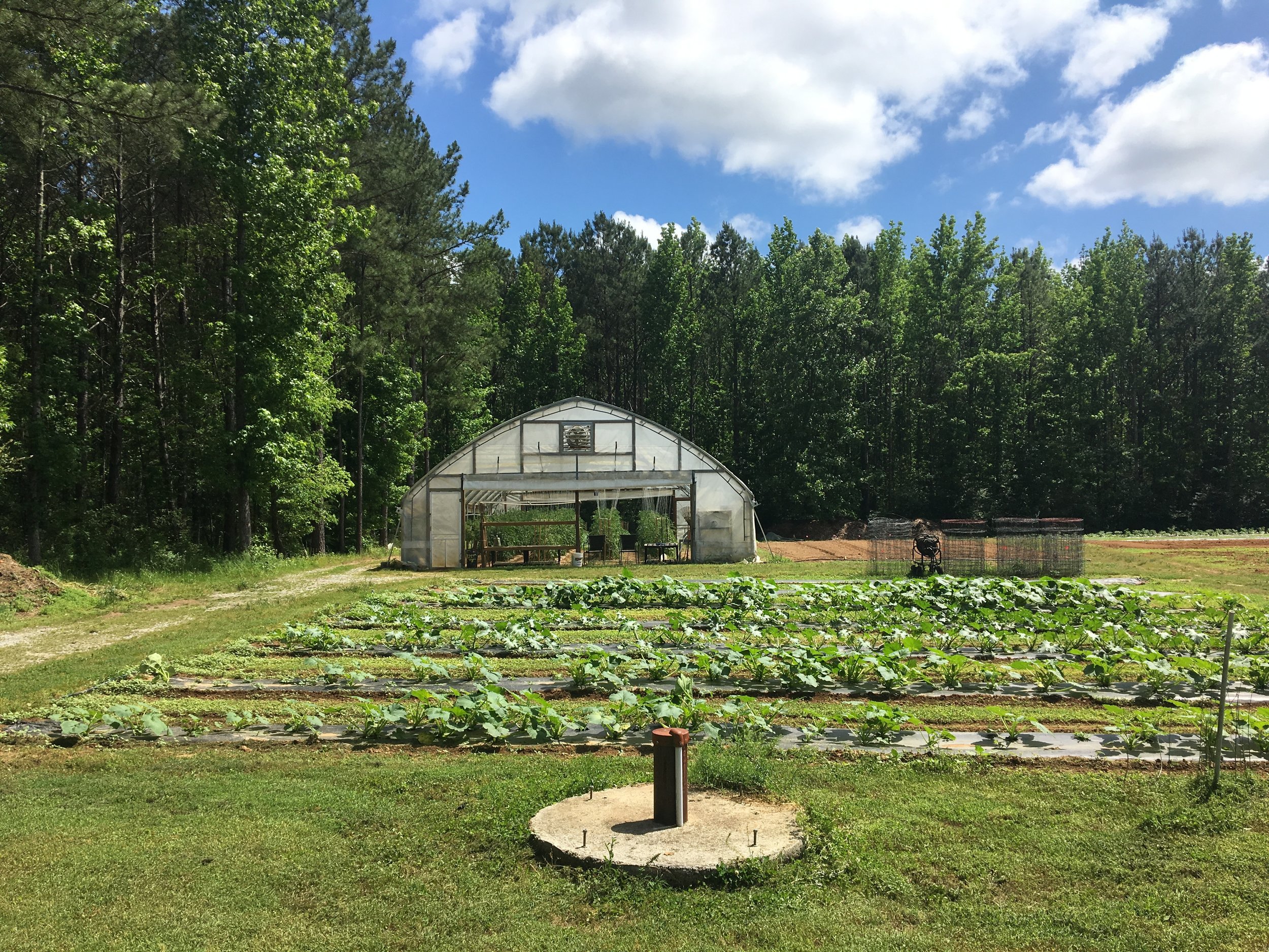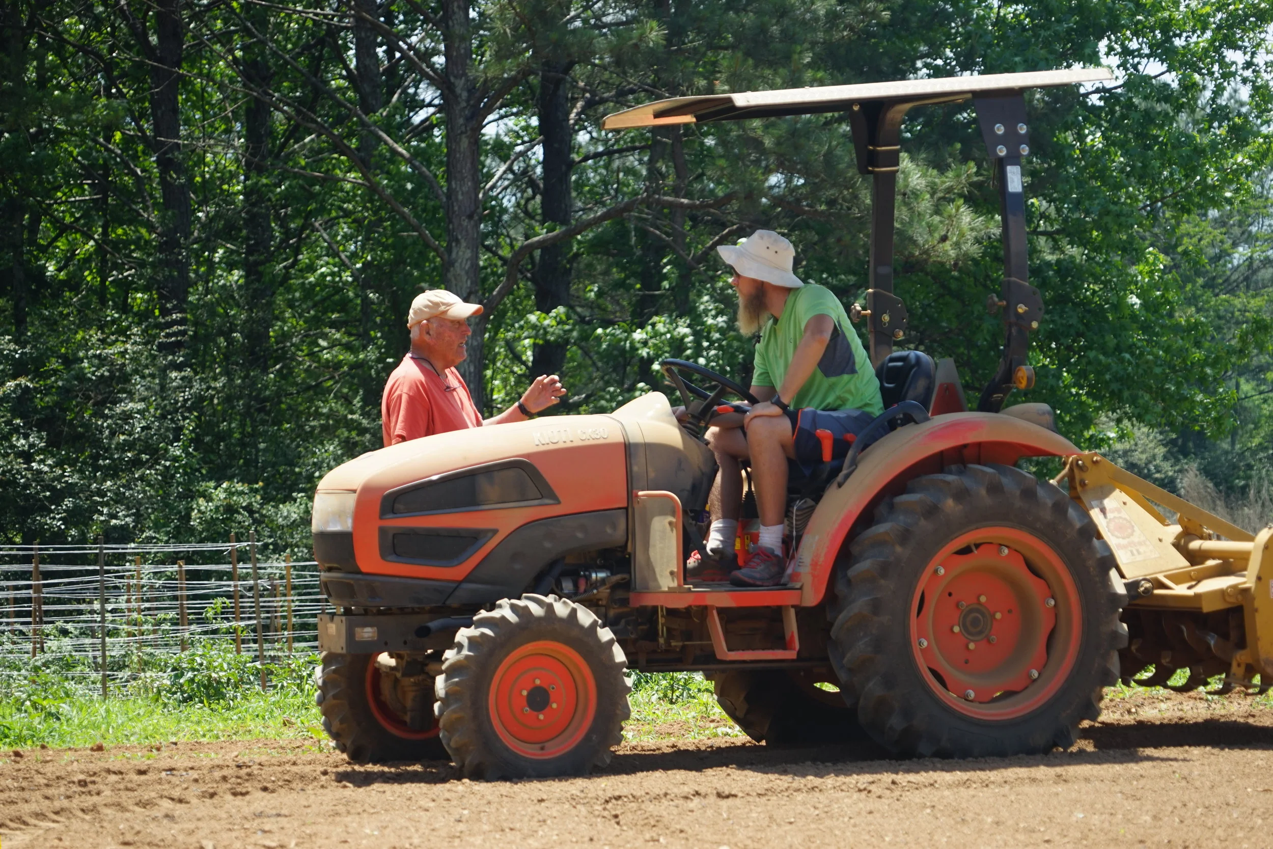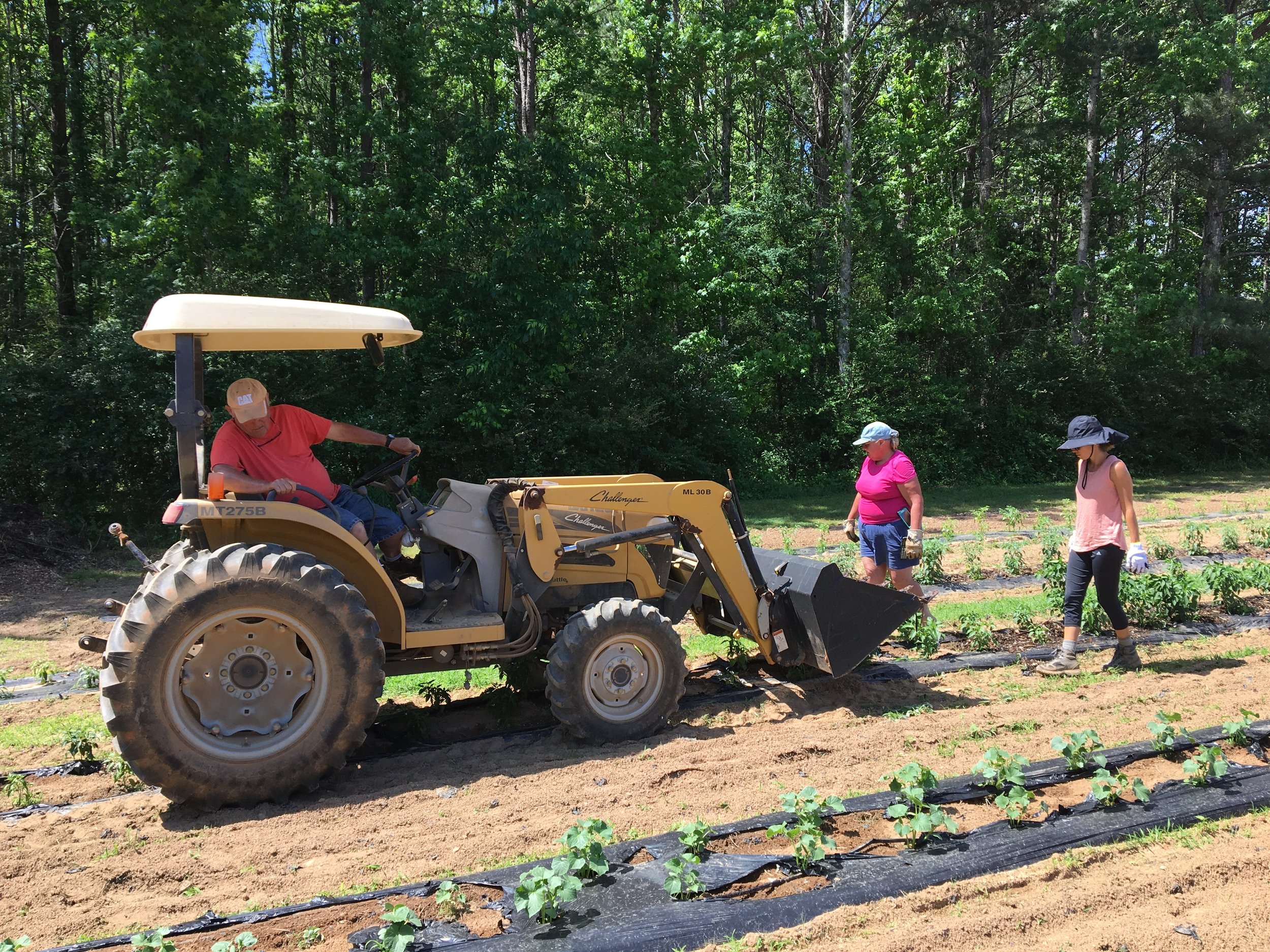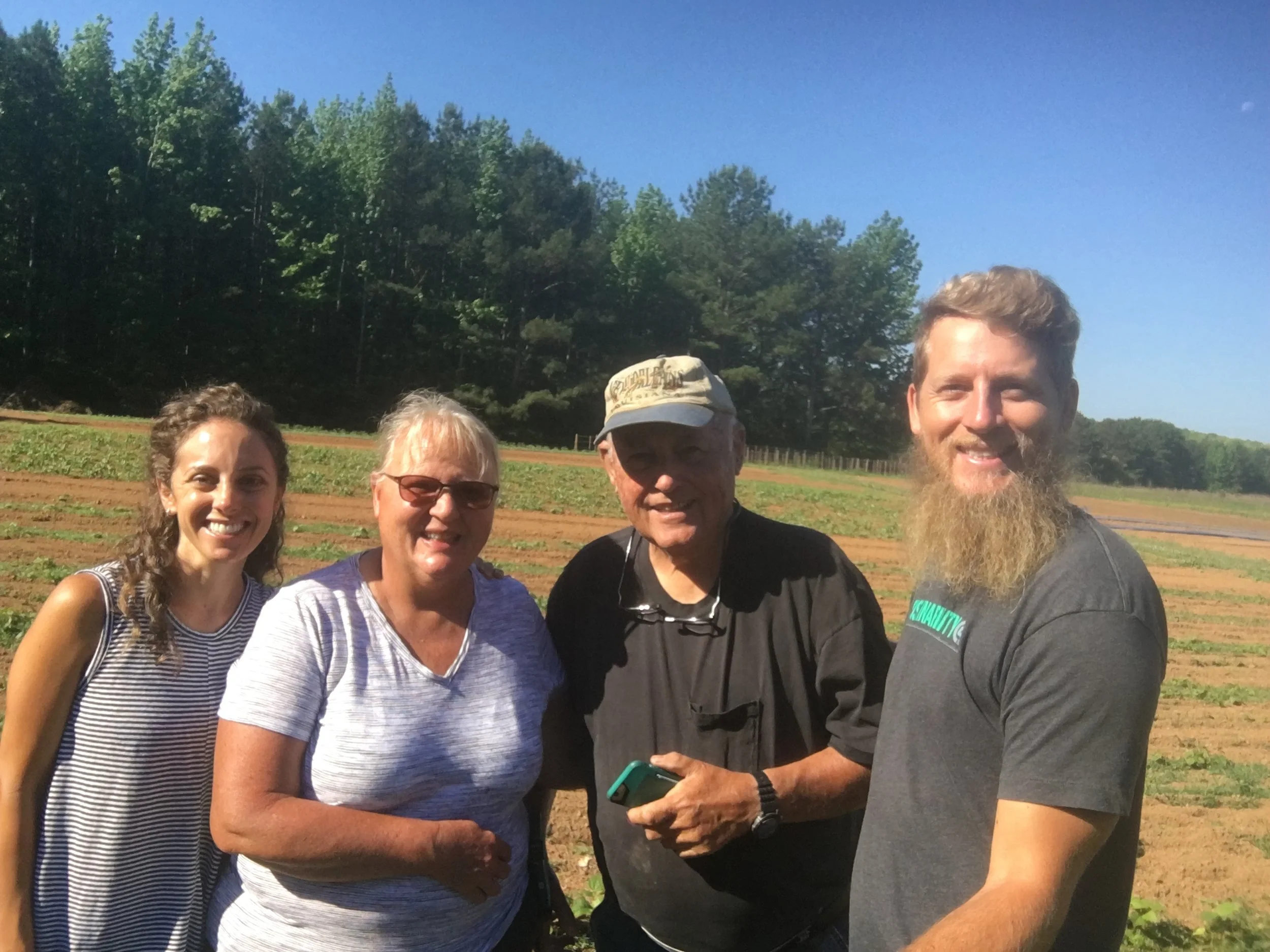 So.. Almost 10 years later, I finally got to work on another farm, this time in Cedartown, Georgia! Dylan's Uncle Henry and his wife, Debbie started Five Cedars Farm after retiring from their corporate jobs near Washington, DC. They turned what started as a small four bed garden to grow their own food into an award winning produce farm backed by deep love, meaning and pride. Shortly after our arrival, Henry and Debbie handed us our official farming hats and taught us how to get to work. We planted squash, harvested sugar snap peas, tractor tilled new planting rows and learned how to Florida weave for tomatoes!